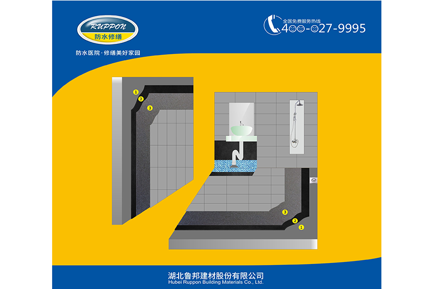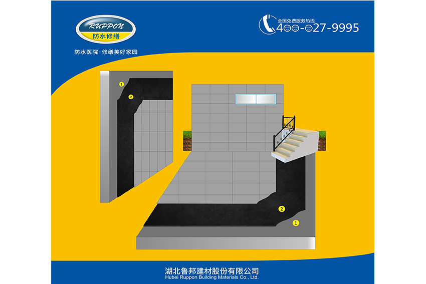 (5)保護(hù)、裝飾層:待涂膜完全干燥固化后,選擇與原內(nèi)墻相同或相近的材料與色澤,用魯邦Ruppon防水修復(fù)專用砂漿作粘結(jié)層,補(bǔ)修裝飾面層。