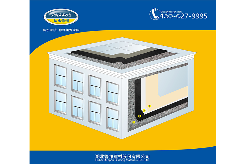 1.5 可選用魯邦Ruppon外墻修復(fù)防水涂料、魯邦Ruppon屋面修復(fù)防水涂料、魯邦Ruppon廚衛(wèi)修復(fù)防水涂料、魯邦Ruppon防水修復(fù)專用砂漿、魯邦Ruppon修復(fù)專用堵漏王、魯邦Ruppon超級(jí)水泥基滲透結(jié)晶防水涂料、魯邦Ruppon911聚氨酯防水涂料、魯邦Ruppon聚氨酯注漿料、魯邦Ruppon建筑結(jié)構(gòu)膠、魯邦Ruppon防水卷材、魯邦Ruppon丁基膠帶,其材性應(yīng)與原防水層相容,耐用年限應(yīng)相匹配,也可采用多種魯邦Ruppon防水材料復(fù)合使用。