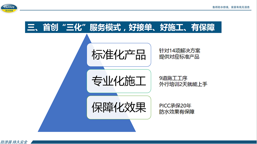 中國物業(yè)管理協(xié)會,在協(xié)助政府制定行業(yè)改革方案、發(fā)展規(guī)劃、產(chǎn)業(yè)政策等方面發(fā)揮重要作用并設(shè)有物業(yè)維修資金研究專業(yè)委員會。湖北魯邦建材股份有限公司在全國率先成立魯邦防水修繕服務(wù)中心,緊緊圍繞老城區(qū)、老小區(qū)作房屋防水修繕服務(wù),切實(shí)的為廣大居民解決生活煩惱且協(xié)助物業(yè)公司與居民構(gòu)建了和諧關(guān)系。探索出了一套具有魯邦特色、可持續(xù)發(fā)展的商業(yè)模式,得到物業(yè)行業(yè)的認(rèn)可。幾年來,全國多地知名物業(yè)企業(yè)紛紛前來考察交流,提升了魯邦防水修繕服務(wù)中心行業(yè)對外形象。魯邦防水修繕服務(wù)中心在全國舊房防水修繕市場環(huán)境下成長為知名品牌企業(yè),建立了“三化”服務(wù)模式對行業(yè)更具有起到了帶好頭的榜樣。